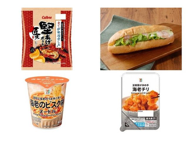 今週新発売の海老まとめ!『堅あげポテト匠味 香ばし伊勢海老しお味』、『ROLLサンド 海老アボカドソース』など♪