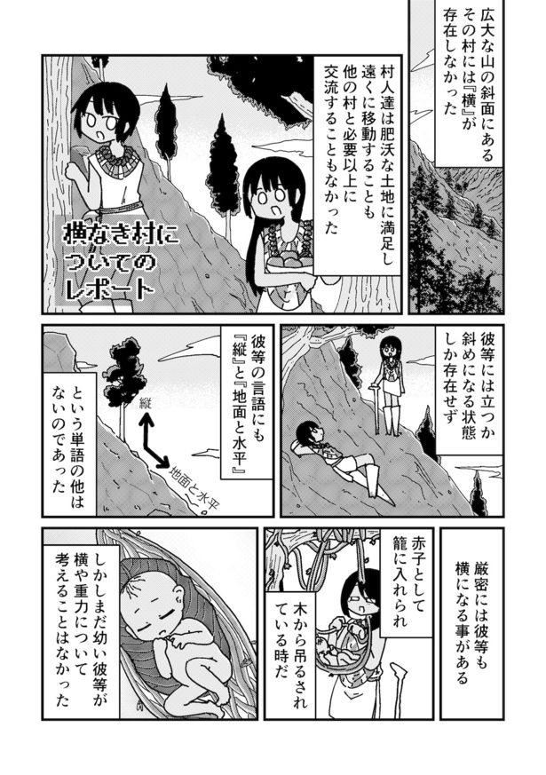 広大な山の斜面にある村。彼らの摩訶不思議な風習に密着する/横なき村についてのレポート