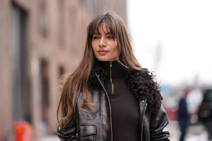 今シーズンのファッションウィークでは、ストリートスナップの常連たちの間で、ロングヘアに透け感バングを合わせるスタイルが存在感を放っている。