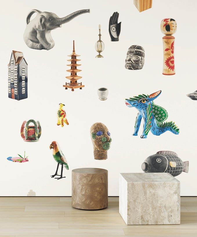 ニューヨークを拠点とするステファン・バークスによる壁紙のコレクション。旅先で入手したオブジェを思い出ではなく“別の場所や文化、生き方への扉”と捉えたバークス。日本のこけしをはじめ、国や地域のアートや工芸について考えさせるプロダクツをちりばめ、多層的なデザインを実現した。