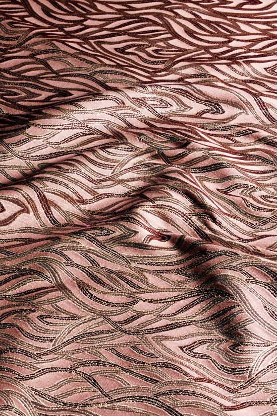 HOSOOの創業家、細尾家が受け継いできた2万点を超える帯の図案をベースに製作されたコレクション。未着色の状態で残された図案を、ディモーレスタジオが独自の感性で着色。淡いグレージュ、セピア、スモーキーなグリーンなどを駆使した、33種類のテキスタイルが誕生した。