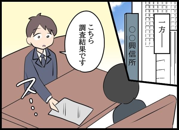 一方、サトコは興信所の人と会っていました。届いた調査結果には、ミチオの裏切りの証拠が…。