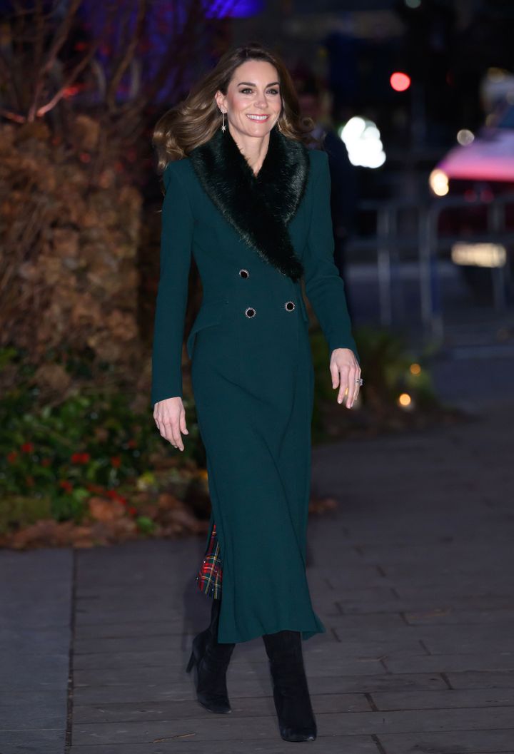 2021年にパンデミック中に地域社会を支えた個人や団体を称えるため、初めて開催された「Together at Christmas」は今年で5回目を迎えた。主催するキャサリン妃は、キャサリン・ウォーカー(CATHERINE WALKER)によるフォレストグリーンのコートドレスを纏い、トロイ・ロンドン(TROY LONDON)のフェイクファーのラペルと ラルフ ローレン(RALPH LAUREN)のスエードブーツをスタイリング。ひときわ輝きを放ったのは英国発ジュエリーブランド、ロビンソン ペラム(ROBINSON PELHAM)のダイヤモンドイヤリングだ。