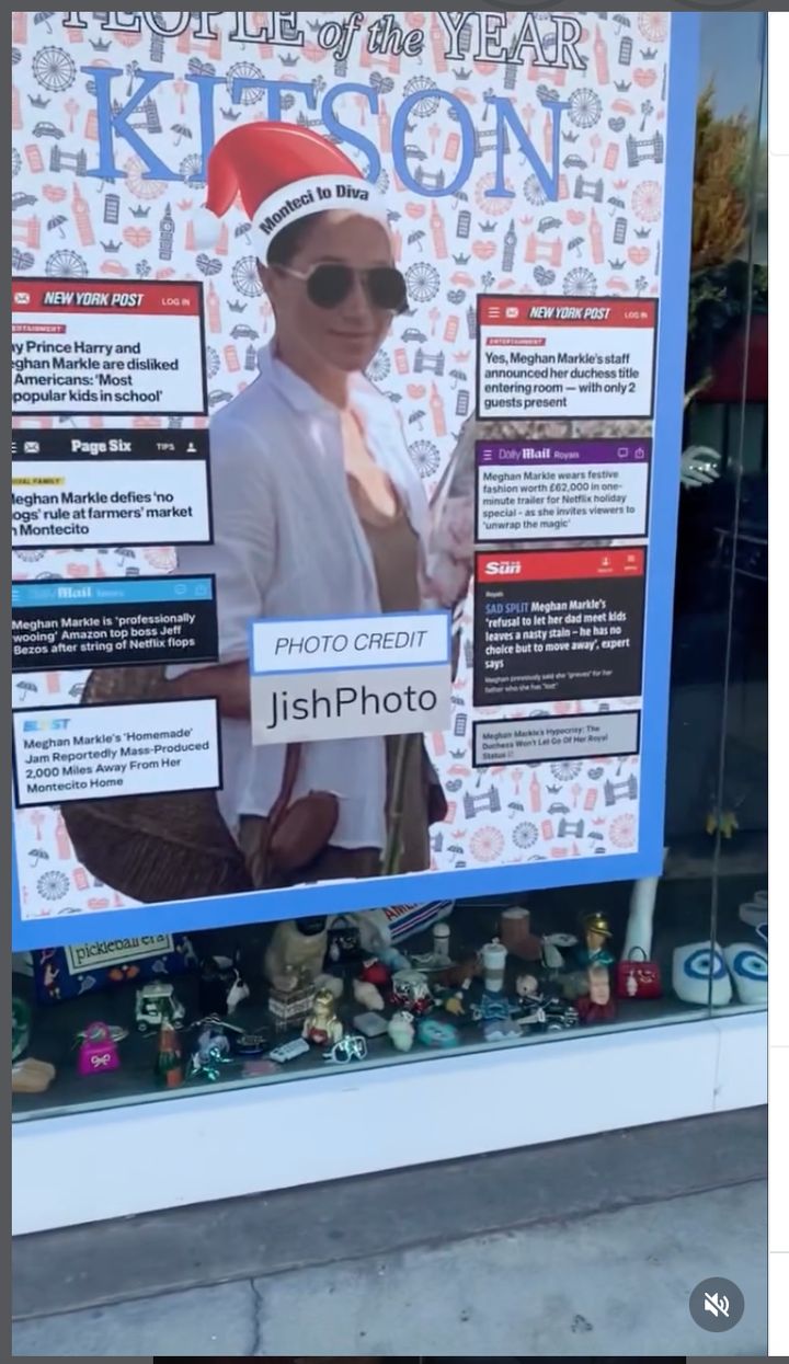 妃をヴィランに選んだのは、セレブ御用達の有名セレクトショップ「キットソン」。ビバリーヒルズとウェストハリウッドの間にある店舗のウィンドウに、今年最も偽善的だった人の写真をディスプレイしているのだが、そこに妃も仲間入り。ショップはその理由も一緒に展示して、「最もひどいヴィラン」は誰かとSNSで尋ねている。妃のディスプレイには「ルールを無視して、ファーマーズマーケットに犬を連れて入った」「自分たちしかいない部屋に入るのに『公爵夫人の到着です』とスタッフにアナウンスさせている」「ブランドから出している『ホームメイド』のジャムは、モンテシートから3,000キロ以上離れた場所で作られている」などマスコミ報道から記事を抜粋して紹介。慈善活動に熱心だとアピールする裏で、それにふさわしくない行動を取っていると改めて暴露されている。