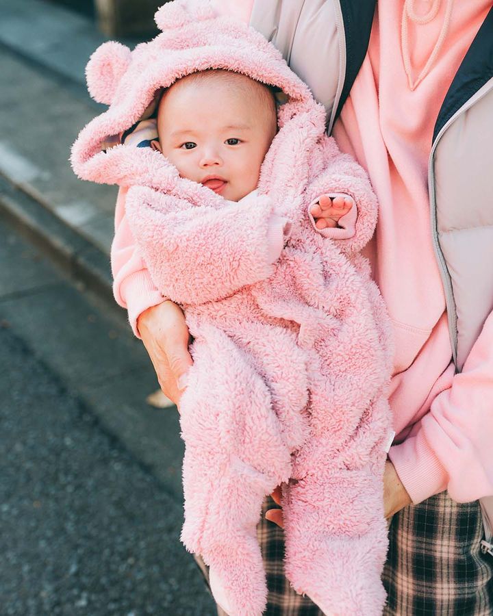 NAME:eiraくん・0歳赤ちゃんが心地よく過ごせるように、肌触りとママの着せやすさにこだわった『コンビミニ』のロンパースに包まれて、幸福感マックスなeiraくん。ふっかふかのピンクファーが冬らしいぬくもりを添え、可愛さをぐんとアップ。フードに付いた小さな耳は、見ているだけで癒される愛らしさ♡item▼