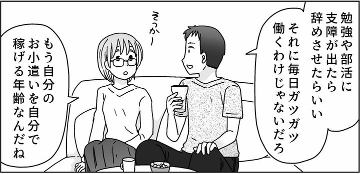 最初は勉強への影響が心配でしたが、夫の「社会勉強にもなる」「勉強に支障が出たらバイトを辞めさせればいい」という言葉に納得し、条件付きで娘のバイトを許可することにしました。