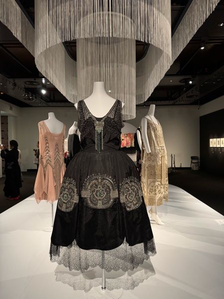 1920年代のパリで花開いた「アール・デコ」。本展では、ジャンヌ・ランバンやガブリエル・シャネル、ポール・ポワレなどの名メゾンが⼿掛けたイヴニング・ドレスやデイ・ドレス(昼の装い)がずらりと展⽰されています。