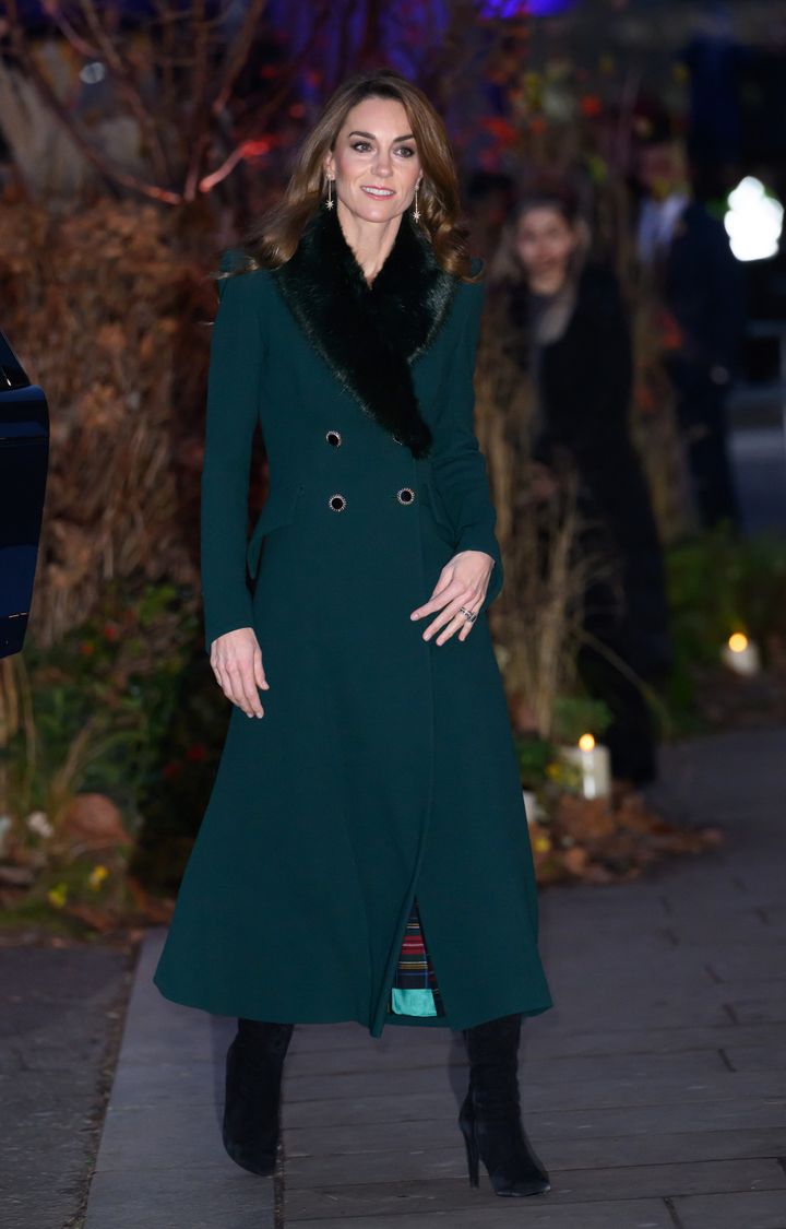毎年、なんだかんだいってもいちばん気になるのがキャサリン妃ファッション。しかも、このイベントではクリスマスをイメージさせるファッションが基本なので、私たちへワクワク感を抱かせてくれます。最近ではシックな装いが増えているだけに、クリスマス=明るめスタイルには特に期待が集まるというものです。と、前置きはさておき、この日のキャサリン妃は、グリーン!