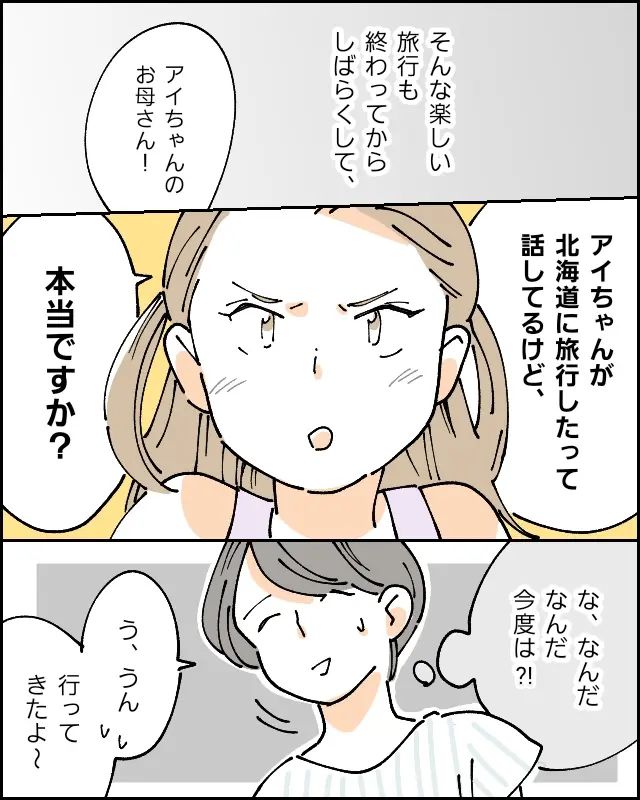 「アイちゃんのお母さん!アイちゃんが北海道に旅行したって話してるけど、本当ですか?」
