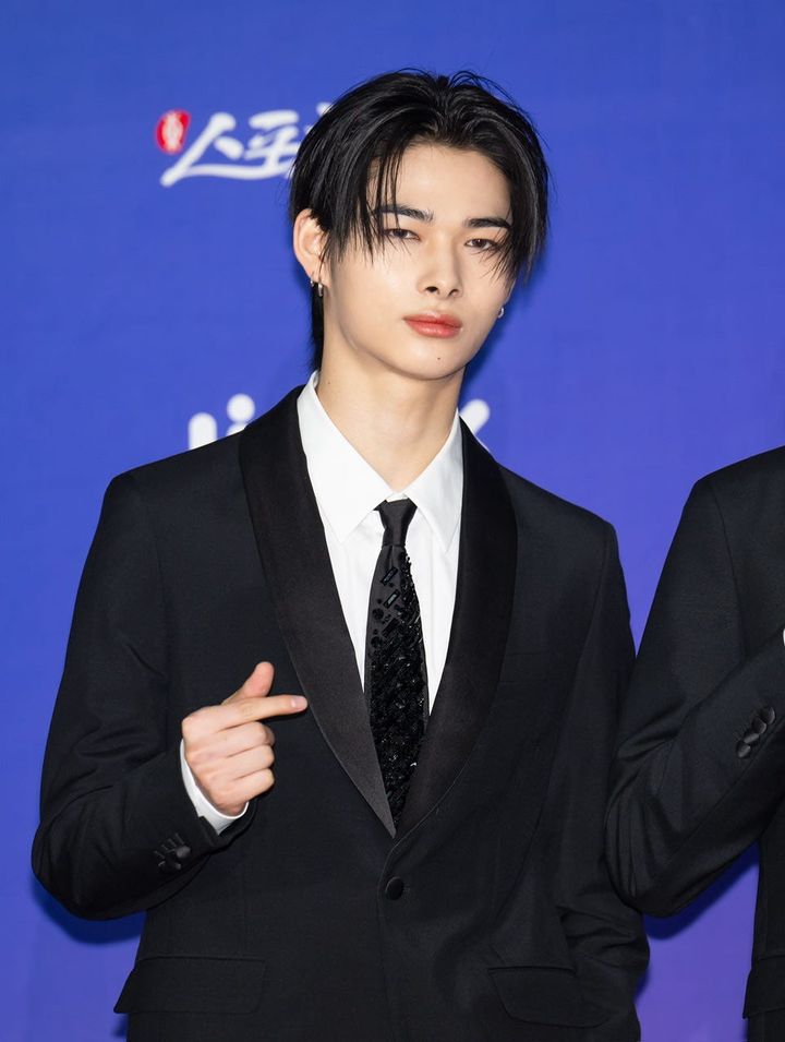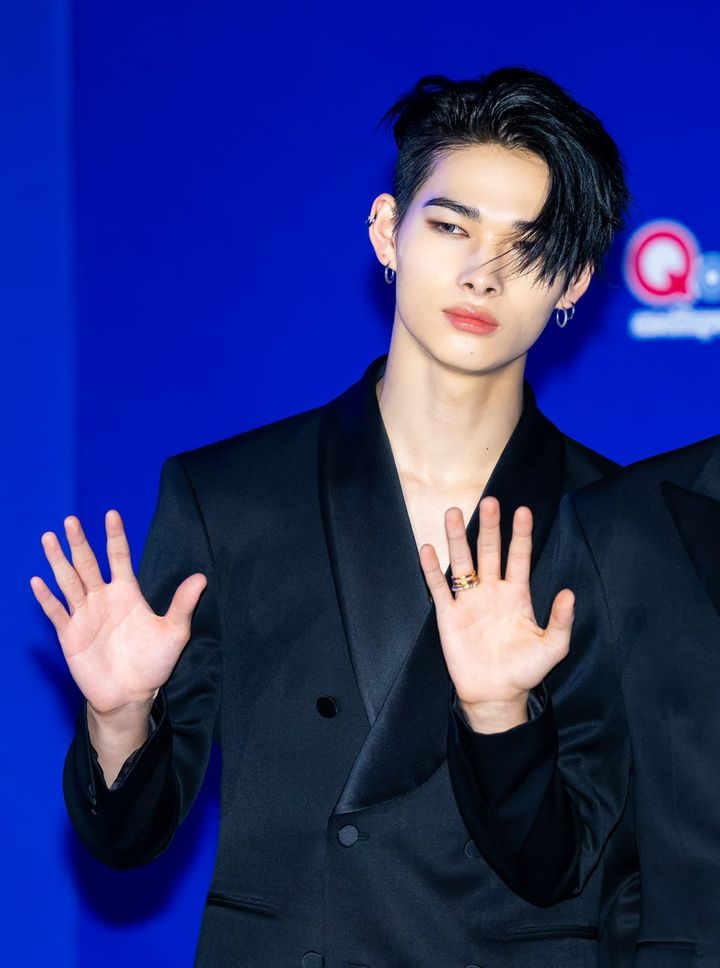 「Asia Artist Awards 2021」に黒髪で登場! ストレートな前髪に束感を出して、鋭い雰囲気を演出。