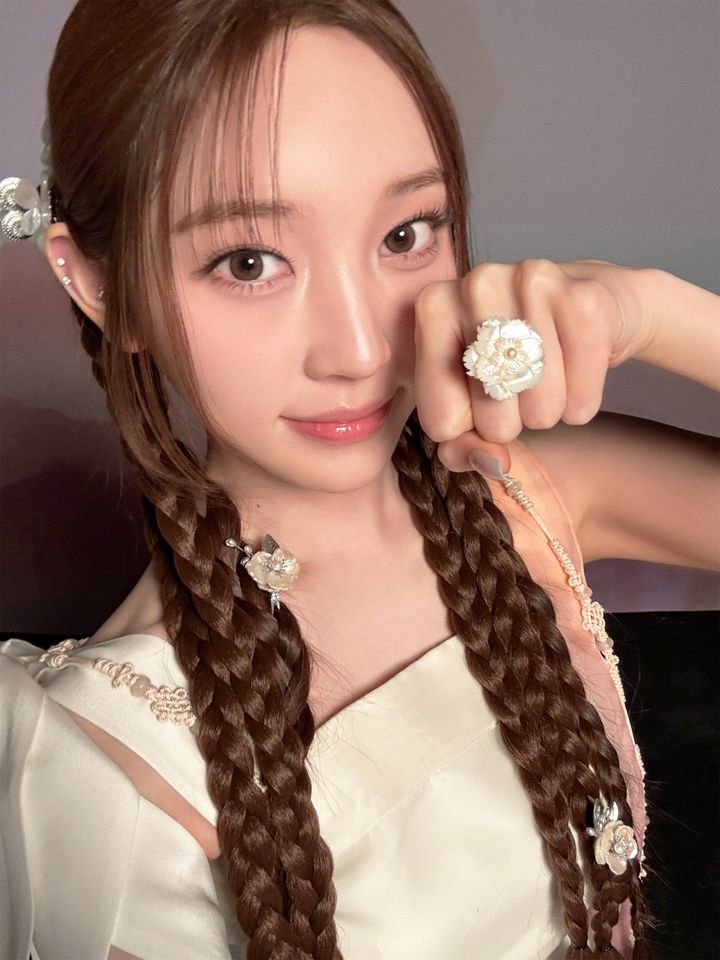 コスメブランド「クリオ」が韓国国家遺産庁とコラボした「K-ROYAL HERITAGE EDITION(王室エディション)」のキャンペーンビジュアルを務めたALLDAY PROJECT。アニーはマットに整えたベースメイクに、束感まつげとピンクのツヤリップを合わせた王道アイドル風の清純メイクを披露。