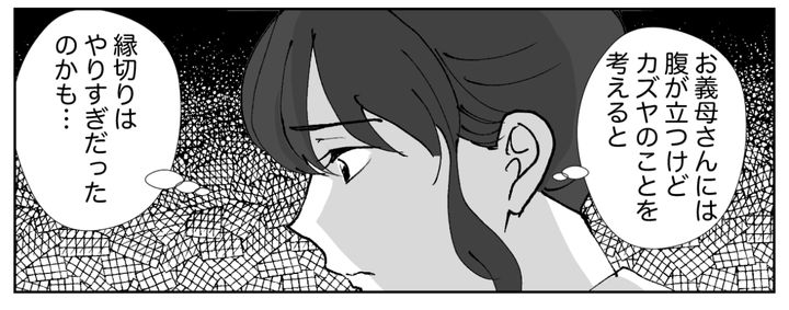 夫の様子を見て、義両親との縁を切るのはやりすぎだったかもと、心が揺れるのでした。そのような思いを抱えたまま、1週間ほど過ぎたところで……。
