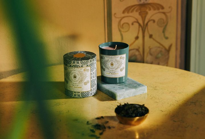パリ発「オフィシーヌ・ユニヴェルセル・ビュリー」の“ブジー・パルフュメ”は、19世紀の薬局文化を背景にしたブランドの美意識を、素材と香りで体現したキャンドル。ブランドを象徴する装飾的なレリーフが施された重厚な天然大理石のベースの上部には美しいフォルムのガラス蓋が組み合わされ、置くだけでオブジェのような存在感を放つ。香りはローズウッドやムスクをベースにした“パテル・マテオス”やウッディノートの“スミ・ヒノキ”など、全8種がラインナップ。ベースの大理石も黒と白からセレクトが可能。点火すると柔らかく広がるアロマが空間に落ち着きをもたらし、クラシカルでありながら現代のインテリアにも自然と馴染み、ビュリーらしい静かな上質さを空間にもたらしてくれる。