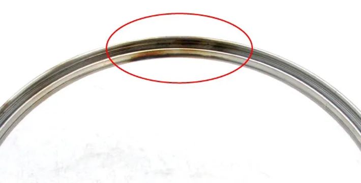 以下は、コンロの火が当たって蓋の縁が変色した例です。