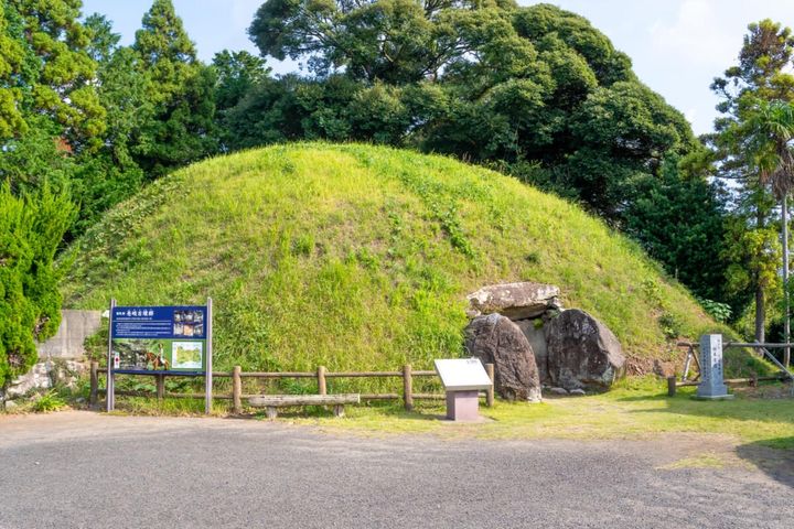 5世紀ごろに築造されたとされる島内最古級の「大塚山古墳」。シュッとしたフォルムが特長的で、前方後円墳しか知らなかった古墳ビギナーな筆者は、思わず「すごい……」とつぶやいてしまうほどのかっこよさ。