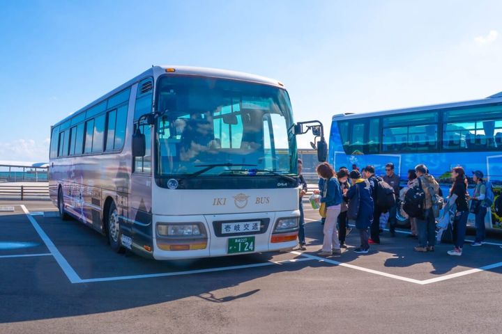 博多港からジェットフォイルで約1時間。壱岐の玄関口・芦辺港に到着したのち、編集部もワクワクしながらバスへ乗り込んでいよいよ古墳巡りツアーがスタート。発売開始からわずかで満員御礼となった本ツアーの車内は、すでに古墳ファンたちの熱気と期待をヒシヒシと感じる……!