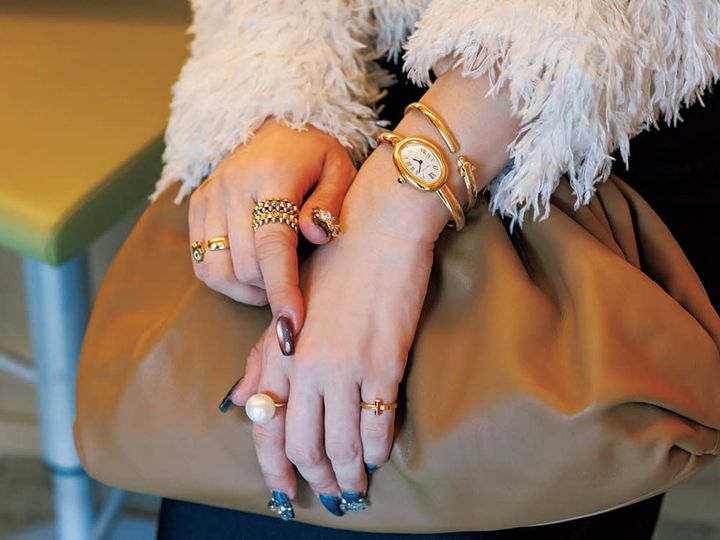 【鈴木さん】BAG / BOTTEGA VENETA、TOPS / JIL SANDER、SKIRT / SPORTMAX、SHOES / VALENTINO、RING / Ja Mais【鳥井さん】BAG / BOTTEGA VENETA、TOPS / GANNI、SKIRT / Maison Margiela、SHOES / Maison Marigiela、WATCH / Cartier、BRACELET / Cartier