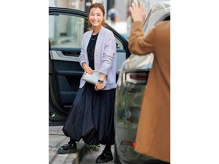 BAG / FENDI、CARDIGAN / DRAWER、TOPS / Max Mara、SKIRT / UNITED ARROWS、SHOES / Roger Vivier、EARRINGS / FENDI、BRACELET / Tiffany & Co.