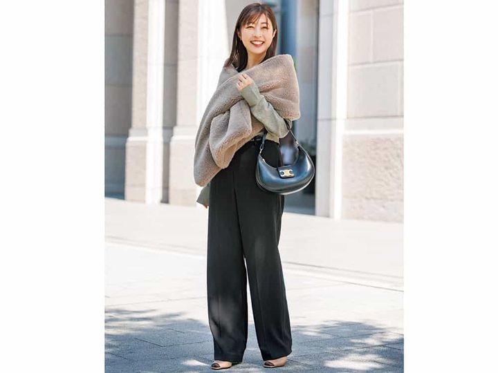 SHOES / Sergio Rossi、KNIT / MYINE、PANTS / MYINE、BAG / TOD’S