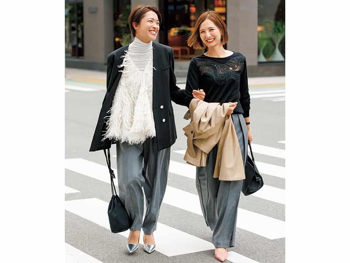 【渡邊さん】SHOES / FERRAGAMO、OUTER / Lig.、TOPS / Curensology、PANTS / LOEWE、BAG / BOTTEGA VENETA、WATCH / Cartier【新田さん】SHOES / Proenza Schouler、TOPS / Lig.、PANTS / MACHATT、BAG / DELVAUX、RING / TASAKI