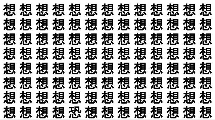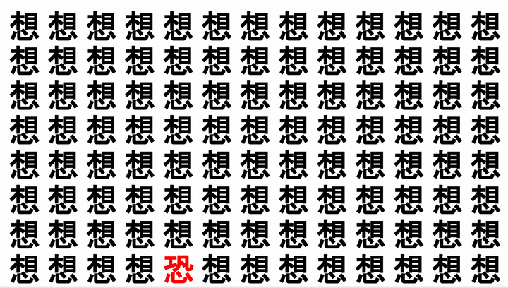 たくさんの「想」の中に、よく似た別の漢字が1文字だけ隠れています。