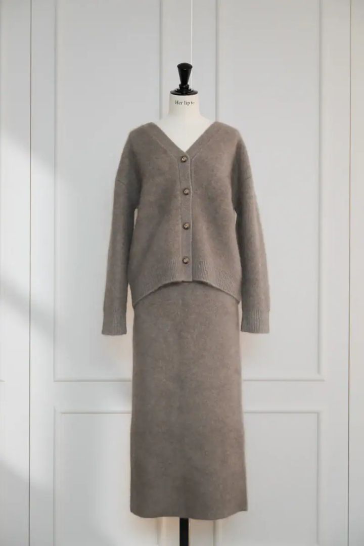 デコルテをキレイに演出♡ 大人なニットアップ【Airy Wool-Blend Cardigan & Skirt】