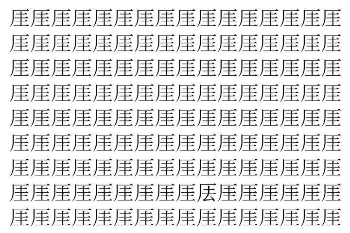 【脳トレ】「厓」の中に紛れて1つ違う文字がある!?あなたは何秒で探し出せるかな??【違う文字を探せ!】