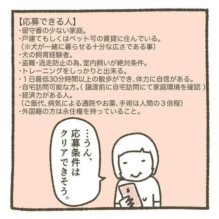 保護犬との生活は、同情心だけでは成り立ちません。生活スタイルにマッチした犬でなければ、双方が幸せにはなれません。責任を持って飼うために、じっくりと考えることは非常に大切ですね。