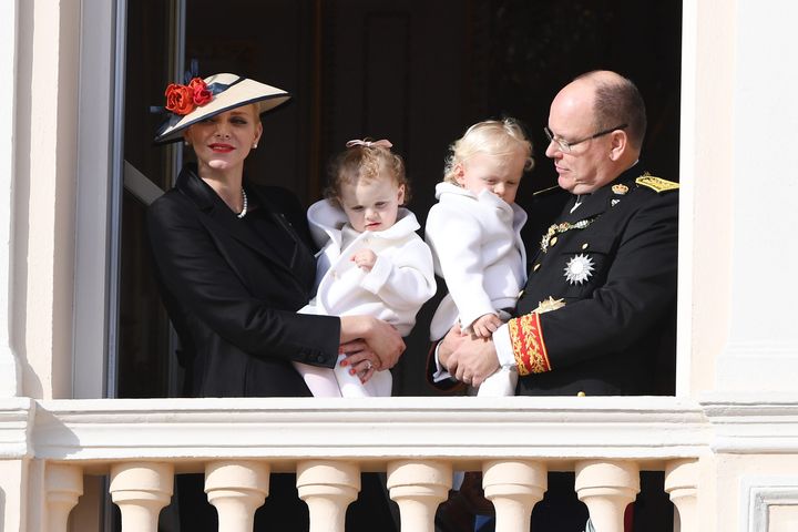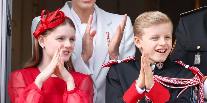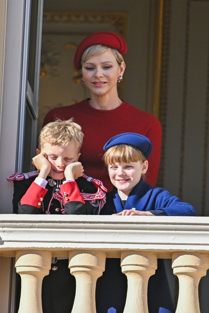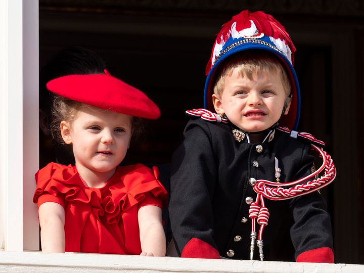 母シャルレーヌ公妃と同じく、子どもたちもハットがお好きなもよう。建国記念日に、ハットをかぶって宮殿のバルコニーに登場しました。