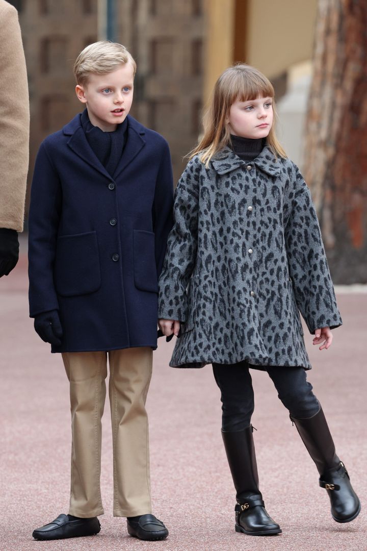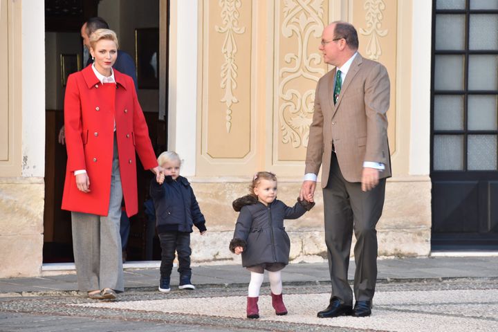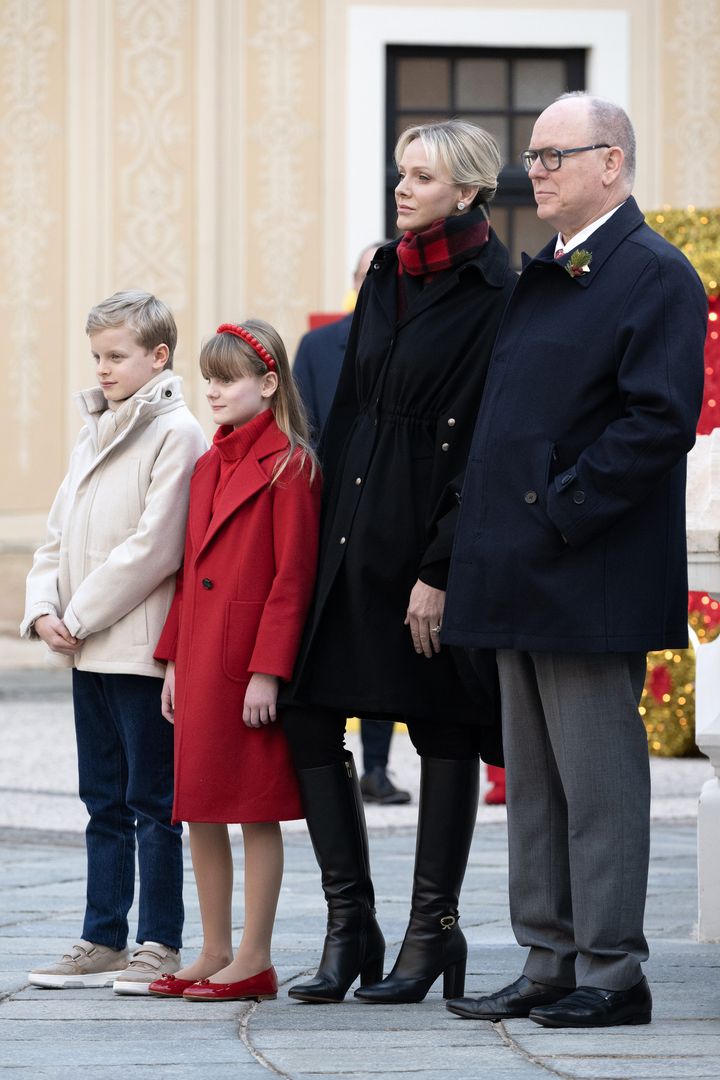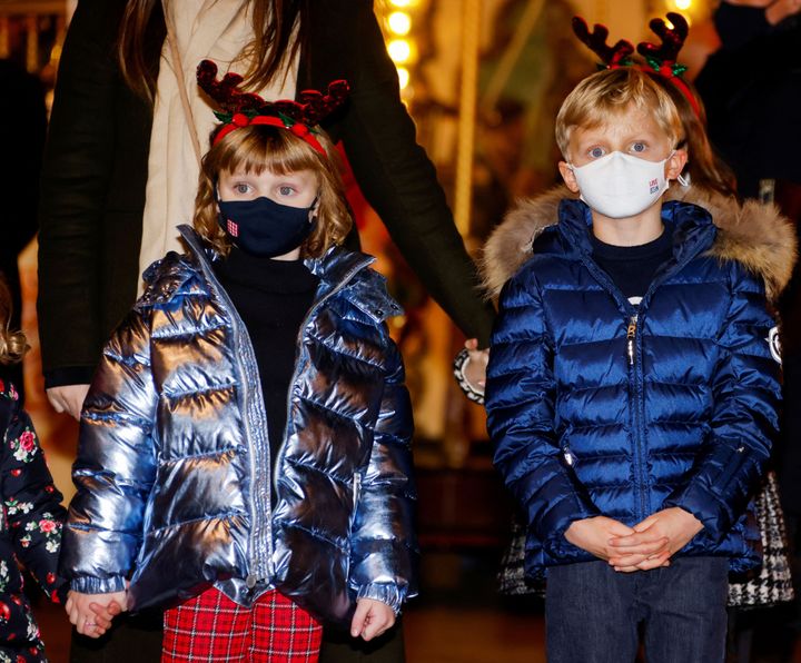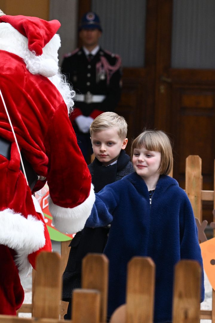 双子は、モナコ大公宮殿で行われた毎年恒例のクリスマスギフト配布イベントに参加し、両親と手をつないで登場しました。