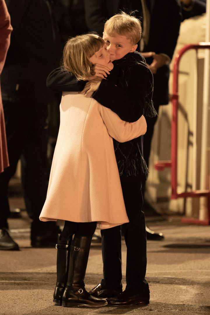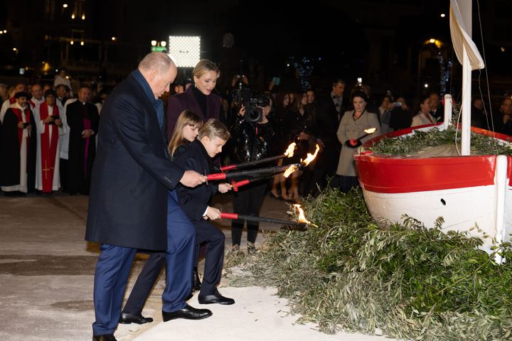 モナコの1月の恒例行事、聖デヴォート祭のひとコマ。双子は両親とともに、ボートに火をつけて燃やす伝統儀式に参加しました。