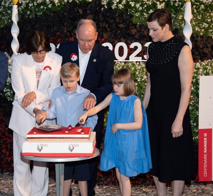 双子にとっては祖父にあたる、亡きレーニエ3世の100歳のバースデーを祝うセレモニーが行われ、2人でケーキカット。