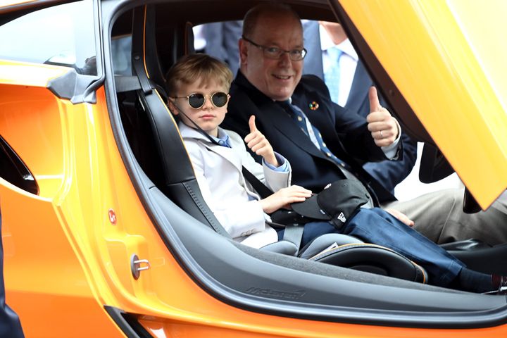 ジャック公子は父とともにレースコースを一周し、この恒例行事に初めて参加しました。サムズアップポーズもサマになっています。