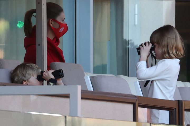 聖デヴォート祭のセレモニーで、宮殿の窓から外を見下ろして。頬杖をつく姿は、まさに双子!