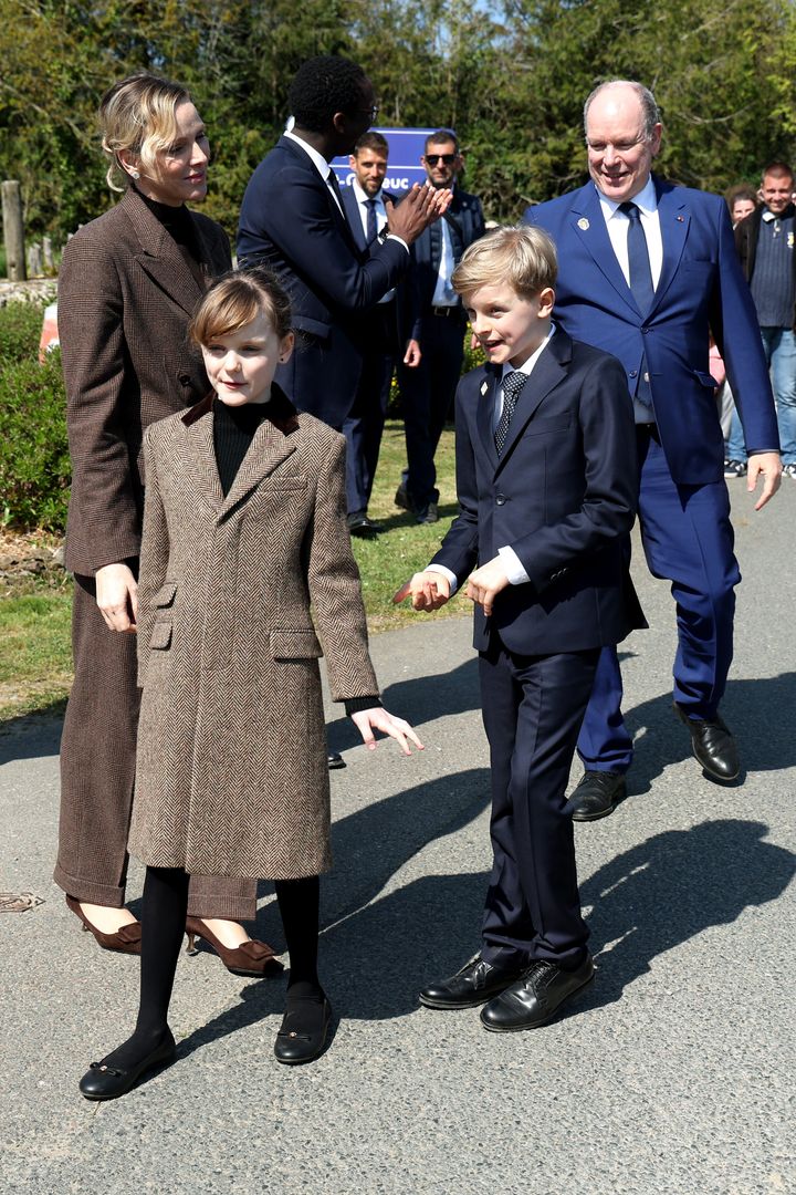 聖デヴォート・ラグビー・トーナメントでのワンシーン。ジャック公子は母親と同じくサングラスをかけ、ガブリエラ公女は父親とおそろいのジャケットを着るという、愛らしい親子コーデでお出まししました。