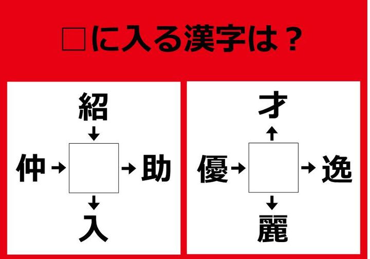 2. 【漢字パズル】短時間で脳トレ! 紹□、□助、□入、仲□・・・!?