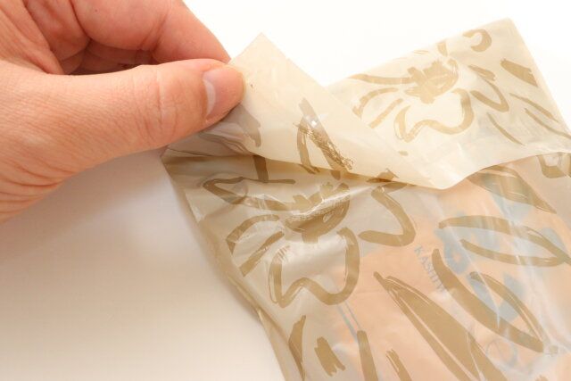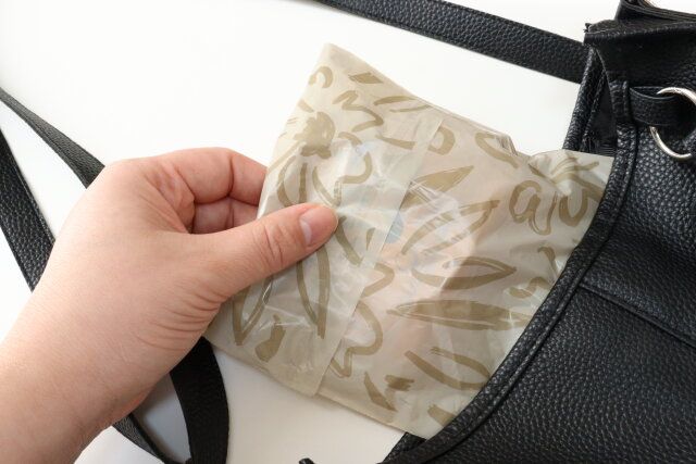 カラーはベージュフラワー柄でバッグに入っていても目立たないデザイン。素材は薄いですが、透け感はあっても中身が丸見えになるほどではない、という絶妙な色合いです。ちょっとした生活ゴミでも、人目に触れにくい配慮がされています。