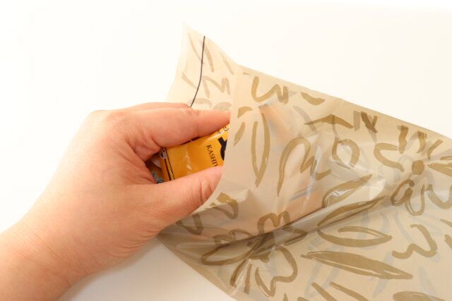 このコンパクトな袋にゴミを入れたら、すぐにテープを貼って封をすることができます。