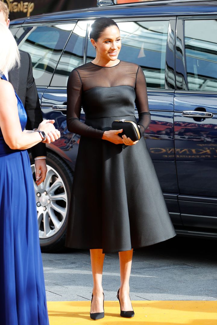 アーチー王子を出産したばかりだったメーガン妃は、この日ヘンリー王子とともに映画『ライオン・キング』のロンドンプレミアへ。デコルテや袖部分にシアー素材を用いた「ジェイソン ウー」のドレスで、ほどよくセンシュアルに。