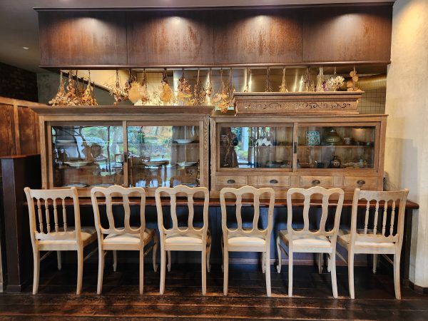 店内はテーブル席とカウンター席があり、アンティーク調の店内でチェアやドライフラワー等のインテリアがどれも可愛すぎます!
