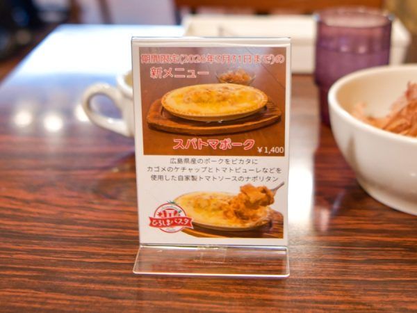 ナポリタンの上には、広島県産ポークピカタが並べられています。 6~7個ほどあったでしょうか。 非常に食べ応えがありました! スパトマポークが食べられるのは、来年3月31日までです‼ 今のうちに食べておいてくださいね。