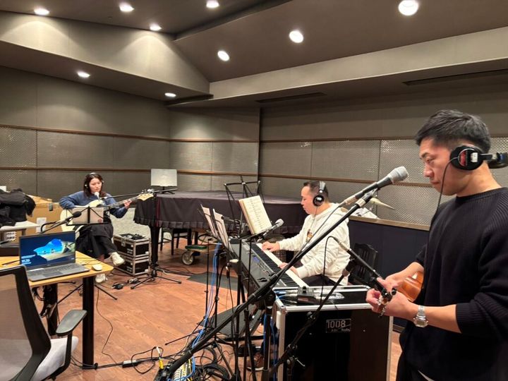 生放送冒頭、リハーサルはしたものの、まだ一回もうまくいった感じがないとすこし心配な様子。そんな中、本番を迎え(本番の様子はぜひradikoで!)、演奏を終えた三人はさきほどの本番の音源を聴きつつ、演奏の様子を振り替えった。