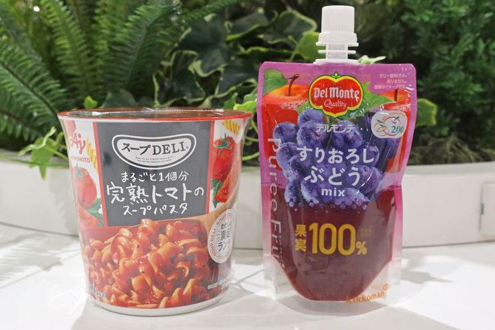 ・「クノール(R) スープDELI(R)」まるごと1個分完熟トマトのスープパスタ 185円 ・デルモンテ ピュレフルーツ すりおろしぶどうミックス 248円