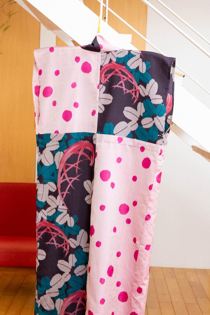二枚の着物を組み合わせて新たな一枚にリメイク中。「3年前から和裁教室に通っています。和裁は大変だけど、やるほどに楽しい!」