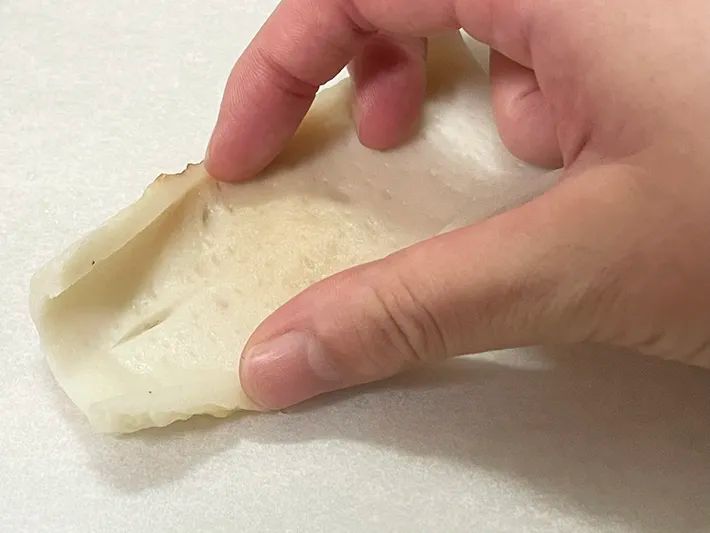 まずは、ちくわに縦方向の切り込みを入れて、開きましょう。