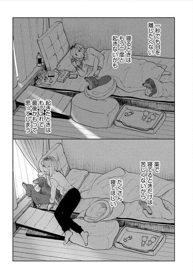 余命1カ月と診断された大好きな愛犬・アル。17年間、一緒にいろんな場所に行って、いろんなことをしたよね。どこに行ってもなにをしてても、いつもアルは私だけを見ててくれた。耳が聞こえなくなっても、目もあんまり見えなくなっても、それでも私を探してそばにいてくれたね。最高に楽しくて幸せだったアルと過ごした17年間。でも思い返すと全然時間がたりなかった――。なによりも大切だった愛犬との別れを描いた『アルへ』。いつか訪れる愛犬との別れのとき、あなたは何を思いますか。