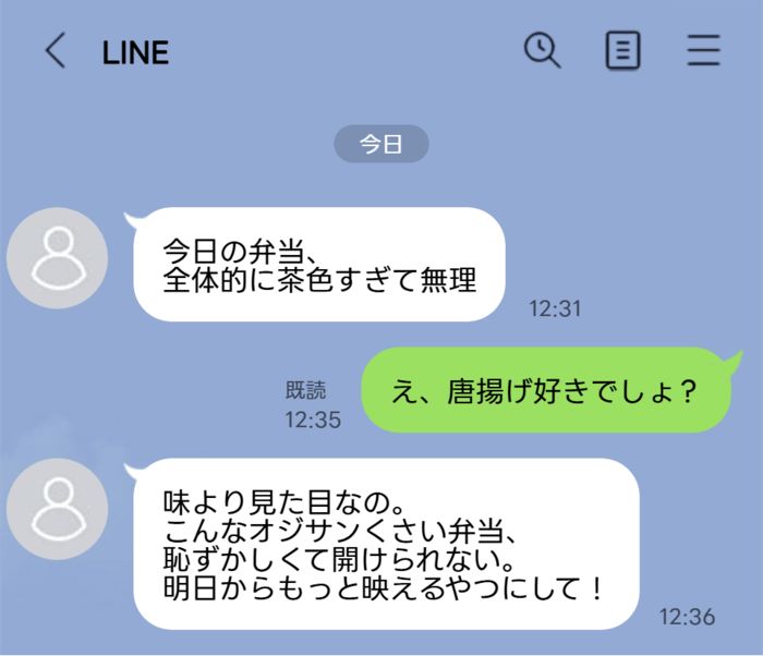 『味より見た目なの。こんなオジサンくさい弁当、恥ずかしくて開けられない。明日からもっと映えるやつにして!』