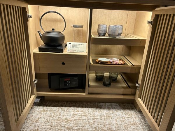 各客室にはズボン付きのパジャマ、各階に設置してある給水機で飲料水を汲むことができるボトル、大きめの冷蔵庫があり必要な物だけを選ぶことのできるアメニティバーもロビーに備え付けられています。