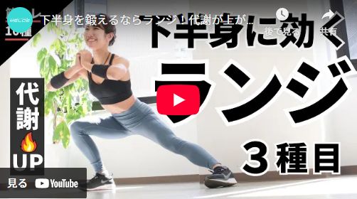 下半身をしっかり使うランジは、代謝アップに効果的なトレーニング。3種の動きを組み合わせることで、痩せやすいカラダを目指していきます。