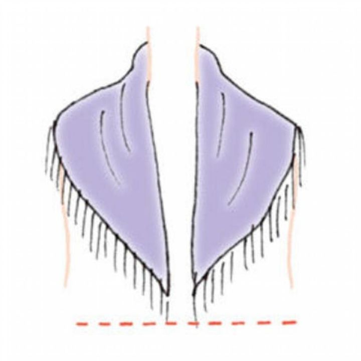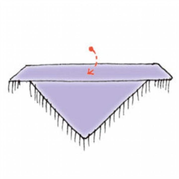 【1】正方形のストールを三角折り(※)にし、折り目の近くをさらに少し折り返しておく。